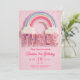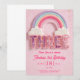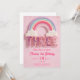 Editable Third Birthday Invitation, Pink colourful Rainbow digital printable Canva Template 5x7,