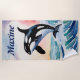This beautiful beach towel features a whale and an editable name at the top. You can change the name as well as the font size, style and colour.
