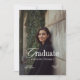 The front of the invitation features an allover photo template, allowing you to personalise it with a cherished image from your academic journey. Whether it's a formal graduation portrait or a candid shot with friends, this feature transforms the invitation into a keepsake that captures your unique story. The modern design elements are thoughtfully arranged to create a cohesive and visually appealing composition. The sleek lines and clean layout evoke the elegance of a glossy magazine spread, making your invitation a standout piece.