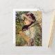A fine art postcard with the impressionist portrait painting, Spring (1881), by Edouard Manet (1832-1883). He was a French painter from Paris. Jeanne de Marsy was a French actress during this time period and is the model for Manet's painting. She is holding a parasol edged in lace and dressed in an elegant gown with a spring bonnet and gloves.