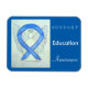 Education uses a blue ribbon to support awareness for its cause. The custom magnet features a blue awareness ribbon guardian angel art magnet with the message "Support Education Awareness". The blue awareness angel ribbon art can be customised with personalised messages to make great cause merchandise magnets for fundraisers, awareness gifts, or other special cause events or occasions.