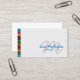 This chic education and childcare professional business card has a colourful horizontally striped border on the left edge of the card. The lower right edge consists of a your name and title in simple easy to read letters. Behind your name and title, your monogram letter appears in a bold cursive font (you can choose your own colour). Perfect for child care, education, pre school, tutoring, studies, academic, professional, personal themes.