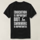 I give wanted to give this a 4 instead of a 5 because these Basic DARK T0shirts run unexpectedly SLIM or Narrow. Which is great if you do not have a potbelly, but I have a paunch. It isn't the shirt's fault that I've got a beer belly. The design and shirt itself is a quality cotton shirt. The color is more of a deep purple, but still a very pretty color. The Basic DARK T-shirts run a bit SLIMMER than the Basic Ts. The neck is a fraction narrower (or seems to be narrower) also. I'm a paunchy middle-aged woman and my neck is 12 inches (31cm) thick and the neckline fell about the same as in the photo of the man, and I had the desire to tug it a bit. So if you're a thick necked man or like loose shirts, be aware these are slimmer shirts. Once I get rid of my lockdown paunch it'll look great. The shirt washed well in cold water with no apparent bleeding. We don't have a dryer, so it hung dry. Did not shrink. Love the colors and the design. The design looks smaller on my shirt than it does on the model on-line. But still, it looks good on the shirt. The printing looks as it does on the model, just the size seems fractionally smaller. Washed garment in cold water, hung dry and design appeared unaffected.