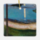 at christmass as a hanging decration for the chritmass tree.. its white porcline or cramic but very well made with added photo on one side.. also has a lovley red bag to keep it in.. execlent printed text in bold and black stands out well aganst the blue background of the photo.