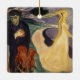 at christmass as a hanging decration for the chritmass tree.. its white porcline or cramic but very well made with added photo on one side.. also has a lovley red bag to keep it in.. execlent printed text in bold and black stands out well aganst the blue background of the photo.