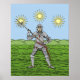 This original illustration by Richard H. Fay depicts Edward of York, clad as a knight in full English plate harness, wielding a late-mediaeval poleaxe. Three suns in splendour, symbolic of the phenomenon witnessed on the morn of the battle of Mortimer's Cross, shine in the sky above.
