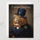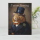 The image on this greeting set presents a guinea pig dressed in traditional Edwardian attire. The guinea pig is adorned with a black top hat and a tailored dark coat with a lapel, accented by a boutonniere. Underneath the coat, it appears to wear a shirt complemented by a light-colored bow tie. The subject is posed against a textured brown backdrop that mimics the style of classical portrait photography from the early 20th century, invoking the fashion and formal portrait style of the Edwardian era. generativecontent