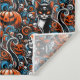 Unleash the spirit of All Hallows’ Eve with this captivating illustration featuring a sinister feline at its heart. Surrounded by grinning jack-o’-lanterns and ghastly skulls amidst swirling mystical patterns, this artwork is perfect for anyone looking to add a touch of eerie elegance to their Halloween celebrations.