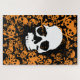 "Explore the enigmatic composition of 'Eerie Symmetry,' a captivating artwork featuring a multitude of human skulls and bones in vibrant hues. Crafted through meticulous stenciling, the arrangement boasts an array of colours, with a striking contrast between the orange backdrop and the central white skull. Dive into this intriguing piece that plays with light, shadow, and the profound symbolism of life and mortality."