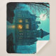 Eerie Victorian Mansion Moonlight Sherpa Blanket