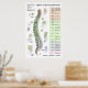 The chiropractic poster list the effects of spinal subluxation on body areas and possible symptoms associated. Colour coded by spinal level. Illustration of nerve innervation of organs by spinal level. Sized for 24" X 36" chart.