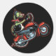 Retro hot rod comix style wheelie-popping monster, with a big, tongue-flopping grin and his middle finger discretely extended. Full colour art, on t-shirts, hoodies, cards, gifts.