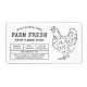 Vintage Farm Fresh Eggs Label design in black and white, rustic style fonts and hand-drawn chicken illustration. Create professional labels for fresh free range eggs, poultry meat or any other related product using this editable rectangle label template. Use this sticker on egg cartons, boxes or any other packaging.