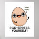 Egg-spress Yourself Funny Egg Pun features a cute egg expressing himself. Perfect pun gift for family and friends who love cute positive egg puns.
