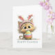 Featuring a playful, wide-eyed kitty dressed with bunny ears and holding a colorful Easter egg, this design is perfect for anyone who loves fun, whimsical holiday cards.