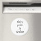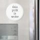 Funny modern typography that reads "THIS YOLK IS WOKE" in a simple yet clean minimalist design.