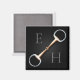 For equestrians and horse lovers, this magnet features a trompe l'oeil illustration of a copper mouth eggbutt snaffle bit between two monograms. You can either use your first and last initials of your name or the initials of a couple.