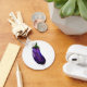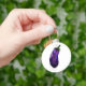 traditional watercolor illustration of a tasty looking purple aubergine or eggplant on a keychain.