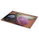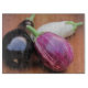 This glass cutting board features eggplants of varied colours. Makes a beautiful presentation.