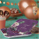 Romantic flowers in shades of rich burgundy, gentle lilac, deep eggplant purple and pinkish orchid pair with modern green botanicals such as ferns and eucalyptus. A deep, eggplant purple watercolor background ties it all together with elegant typography in these romantic wedding / shower paper plates.