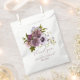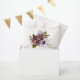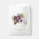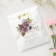 Stylish & elegant wedding favours with calligraphy font and gorgeous fresh floral bouquet. Colours of purple and Aubergine with moss green foliage.