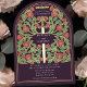 Set the tone for your medieval fantasy wedding with a bold arch invitation design—a grand sword surrounded by florals, and gold accents against a eggplant background. Perfect for couples dreaming of an epic, romantic celebration. Make your love story legendary from the very first glance! NOTE: the gold featured in this design is NOT real foil.