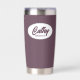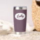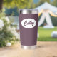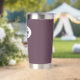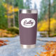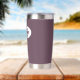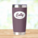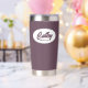 Gift your wedding bridesmaid with this trendy and personalised, stainless steel, thermal tumbler with her name in stylised script in a white oval design. Background colour and script is an eggplant colour. Personalise your thermal tumbler by editing and replacing bridesmaid name with desired name. Available in many, popular bridesmaid wedding colour schemes.