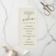 An off-white birthday party program with elegant fonts and a delicate calligraphy script writing welcome across the top of the program. Add your program, the date, and the name of the person celebrating their birthday. Clean, simple, timeless, and elegant.