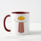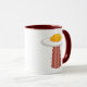 Vector cartoon illustration of a delicious sunny side up fried egg UFO with a yummy bacon slice tractor beam. Keywords: egg, bacon, breakfast, UFO, alien, sunny, side, cartoon, space, extraterrestrial, food, cute, yolk, sci-fi, science, fiction, martian, humour, meat, pork, abduction