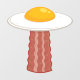Vector cartoon illustration of a delicious sunny side up fried egg UFO with a yummy bacon slice tractor beam. Keywords: egg, bacon, breakfast, UFO, alien, sunny, side, cartoon, space, extraterrestrial, food, cute, yolk, sci-fi, science, fiction, martian, humour, meat, pork, abduction