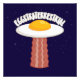 Vector cartoon illustration of a delicious sunny side up fried egg UFO with a yummy bacon slice tractor beam with EGGSTRATERRESTRIAL text. Keywords: egg, bacon, breakfast, UFO, alien, sunny, side, cartoon, space, extraterrestrial, food, cute, yolk, sci-fi, science, fiction, martian, humour, meat, pork, abduction