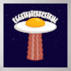 Vector cartoon illustration of a delicious sunny side up fried egg UFO with a yummy bacon slice tractor beam with EGGSTRATERRESTRIAL text. Keywords: egg, bacon, breakfast, UFO, alien, sunny, side, cartoon, space, extraterrestrial, food, cute, yolk, sci-fi, science, fiction, martian, humour, meat, pork, abduction