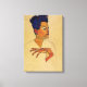 Egon Schiele Self Portrait canvas print. Watercolor on paper from 1910. One of Egon Schiele’s many fascinating self portraits, Self Portrait with Hand on Chest features the artist in profile with his long hands folded across his shirt, and his purple hair standing on end. A beautiful gift for fans of Egon Schiele, Expressionism, and Austrian Art.