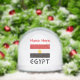 Design on this snow hlobe features Egyptian flag with the word EGYPT underneath in black letters. There is a place to put your name above the flag, in red letters, for a personalised touch. Or, add someone else's name for a gift. Thoughtful holiday gift. Fun stocking stuffer, too.