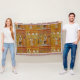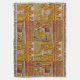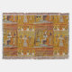 Bold Egyptian decor, a throw features art from era of a Pharaoh in Egypt. Golden background. Stylish fringe edges.