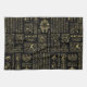Egyptian hieroglyphs and deities gold on black tea towel