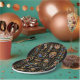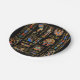 Egyptian hieroglyphs and deities on black paper plate