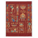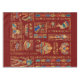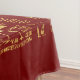 Egyptian hieroglyphs and deities on red tablecloth