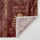 Egyptian hieroglyphs and symbols on red leather tapestry