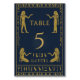 This Egyptian-inspired table number card features a gold hieroglyphic border and Pharaoh figures on a navy background. The number is editable for flexibility. Ideal for a wedding with an Egyptian theme, it pairs perfectly with our place cards, menus, and seating charts.