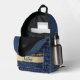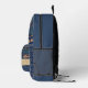 On this stylish back back is a dreamy blue mysterious egyptian hieroglyphs with scarabs and egyptian lotus in blue shading where on the front pocket is a gold band where you can personalise it with a name, phrase or logo.