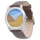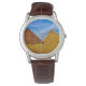 I was uncertain about the size being too small but it looks good. The case looks like aluminum (not shiny) and the time is easy to see. I changed the band because the leather doesn't go with my lifestyle.a. Exactly what I expected, nice yellow. It grabs peoples attention.