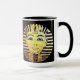 This unique designed mug is beautiful. This mug has a printed image of an acrylic painting of a Black and Gold Pharoah King during the ancient times of Egypt.