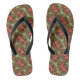 A pair of chic Unisex Flip Flops, with a traditional Egyptian Tribal Shield pattern in Rusty Red, outlined in Black on a Green background. Part of the Posh and Painterly 'Egyptian' collection, this pattern can easily be adjusted to fit any size.