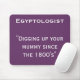 A purple Egyptologist mousemat with white text, reading "Digging up your mummy since the 1800's". I chose the 1800's because while people did study ancient Egypt before then, things didn't really take off until the 19th century when it suddenly became very popular.