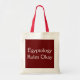 A white and red bag with red text reading "Egyptology Rules Okay". Egyptology is the study of ancient Egypt, including the pyramids, pharaohs and mummified remains. If this sounds like someone you know, this might be a good gift for them!