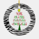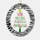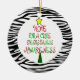 Ehlers-Danlos Christmas tree ornament features the words Hope for a cure Ehlers-Danlos awarness in red, green and light green text in the shape of a Christmas tree with a yellow star and a round black zebra stripes accent border on a white background on the front and back.