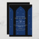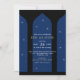 This stylish Eid al-Fitr invitation features a nighttime scene with a navy blue sky and sparking white stars visible through decorative windows. Personalise the white and gold text with your event details for an elegant Eid invite to send to your loved ones.