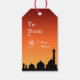 Eid Greeting illustration with an evening sky scene: silhouette of a mosque on a red evening sky.