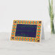 An Eid greeting in green lettering on a dark blue background, surrounded by an ornate border based on a traditional Islamic pattern on interlocking stars with moons in each corner. This richly coloured greeting card design includes outlining in gold gouache paint and is an original design, handpainted by Judy Adamson. The inside is blank for your own message. See also matching mug in the same style.